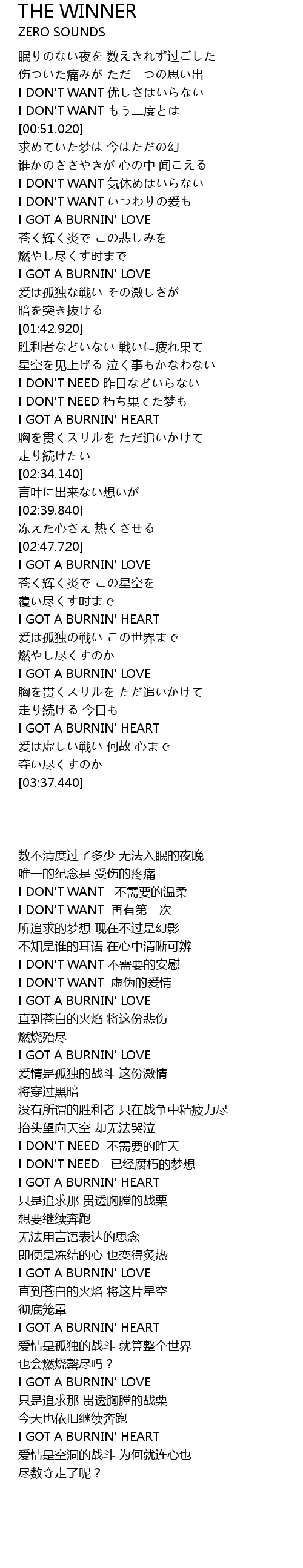 | [03:00.010] | I GOT A BURNIN' HEART |