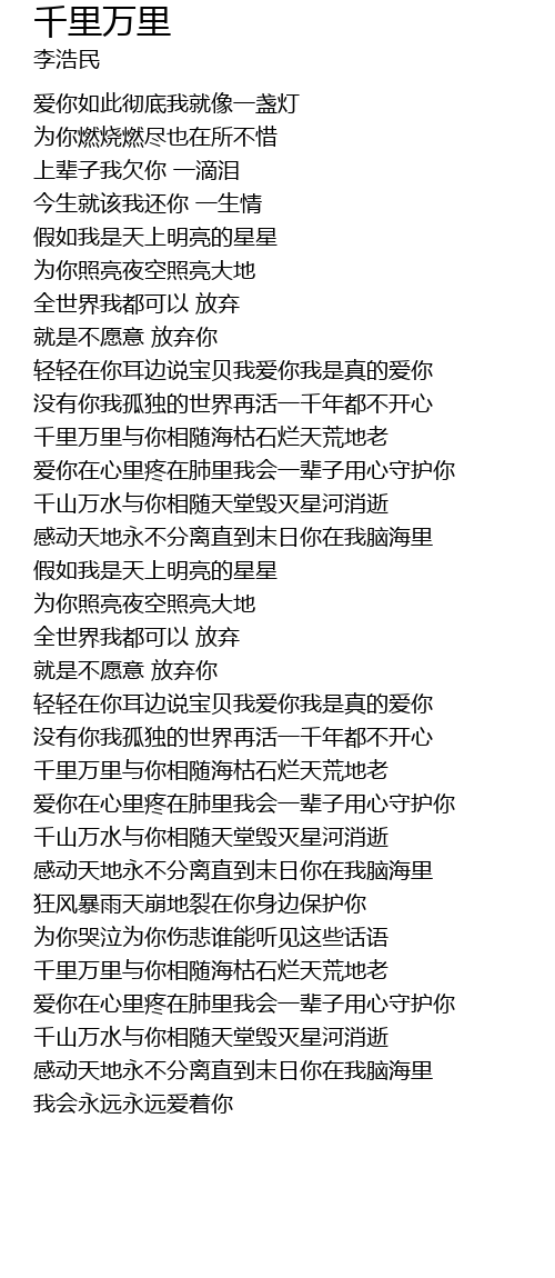 | [01:33.990] | qiān lǐ wàn lǐ yǔ nǐ xiāng suí hǎi kū shí làn tiān huāng dì lǎo |