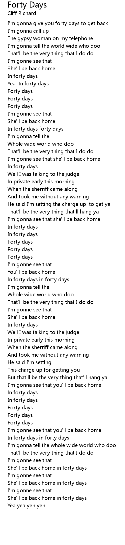 In forty days forty days |