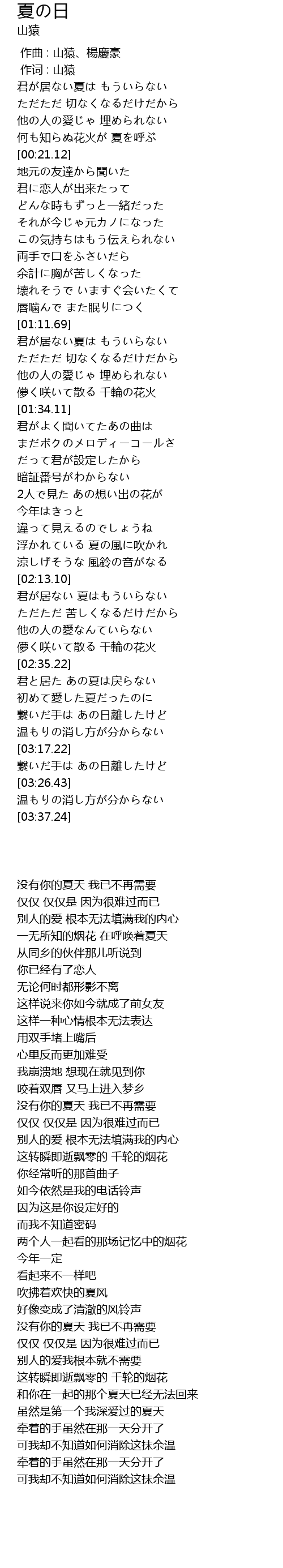 | [02:15.68] | 君が居ない 夏はもういらない |