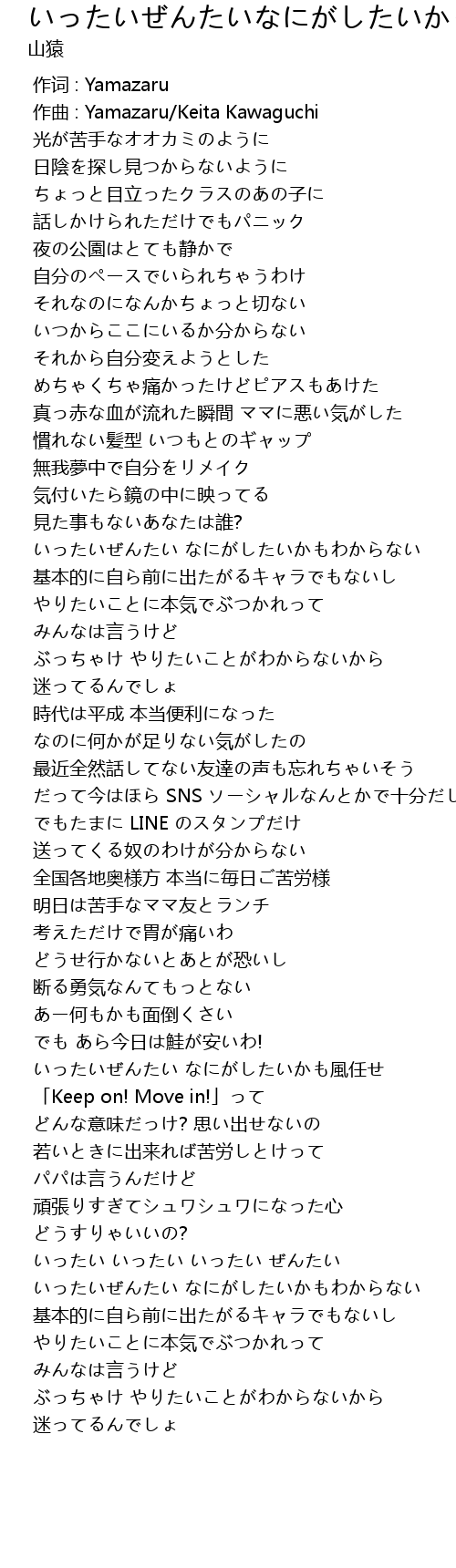 | [00:00.000] | zuò cí : Yamazaru |