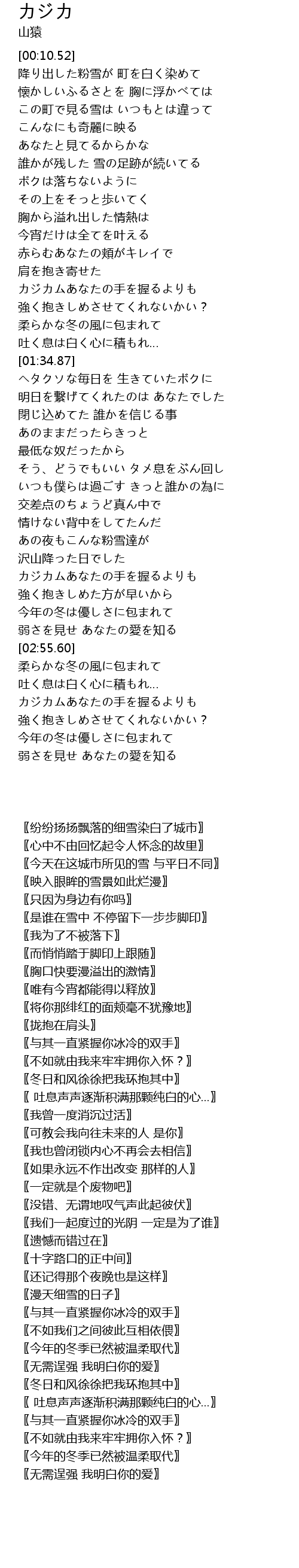 | [03:23.86] | 吐く息は白く心に積もれ… |