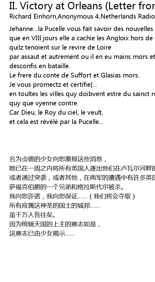 | Song | II. Victory at Orleans (Letter from Joan of Arc) (Voice) |