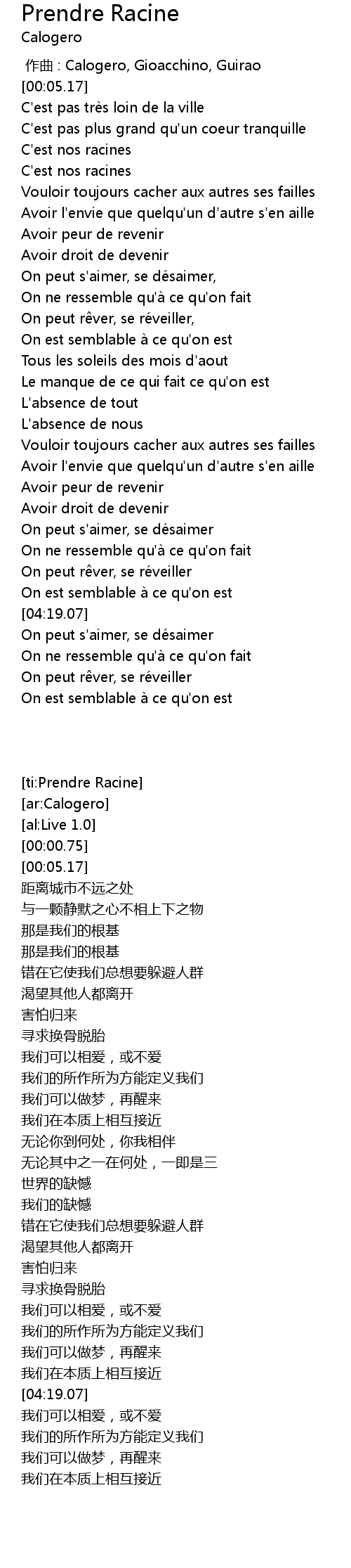 | [01:40.46] | C' est nos racines |