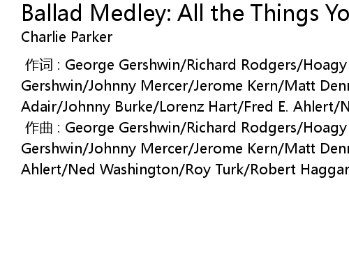 | [00:00.000] | zuò qǔ : George Gershwin Richard Rodgers Hoagy Carmichael Ira Gershwin Johnny Mercer Jerome Kern Matt Dennis Tom Adair Johnny Burke Fred E. Ahlert Ned Washington Roy Turk Robert Haggart |