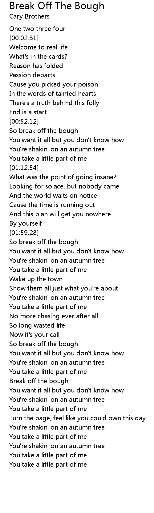 So break off the bough |