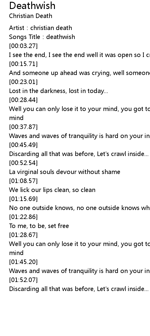 | [00:31.24] | Well you can only lose it to your mind, you got to lose it to your mind |