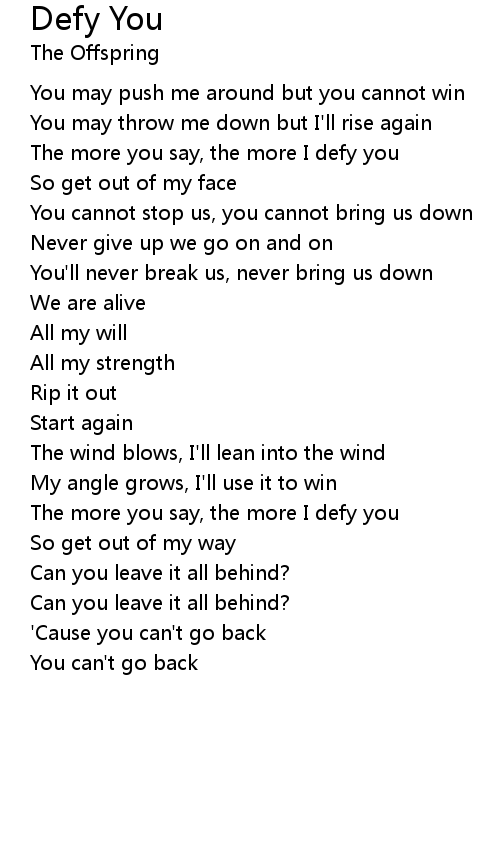 The more you say, the more I defy you |