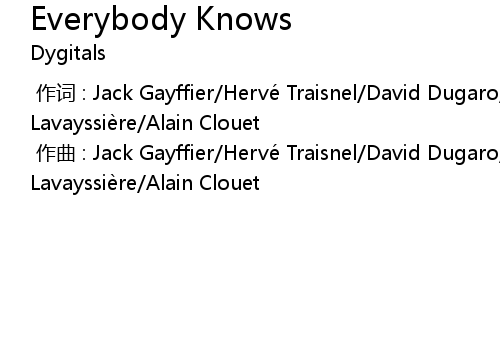 | [00:00.000] | 作曲 : Jack Gayffier/Hervé Traisnel/David Dugaro/Jean-Marc Lavayssière/Alain Clouet |