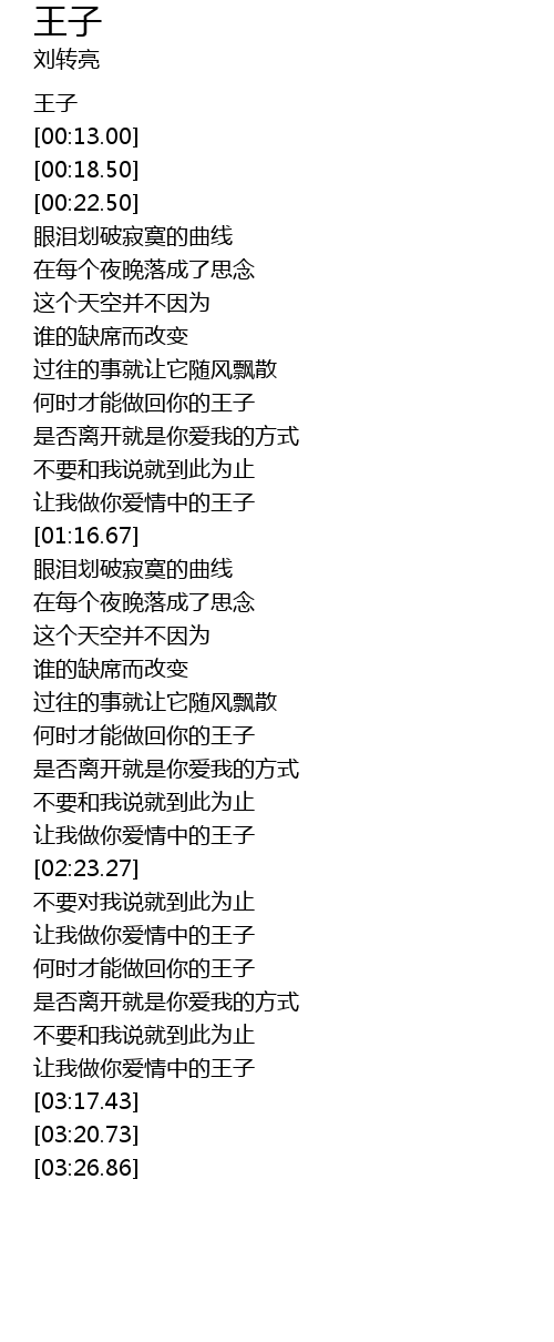 | [00:01.00] | 王子 |