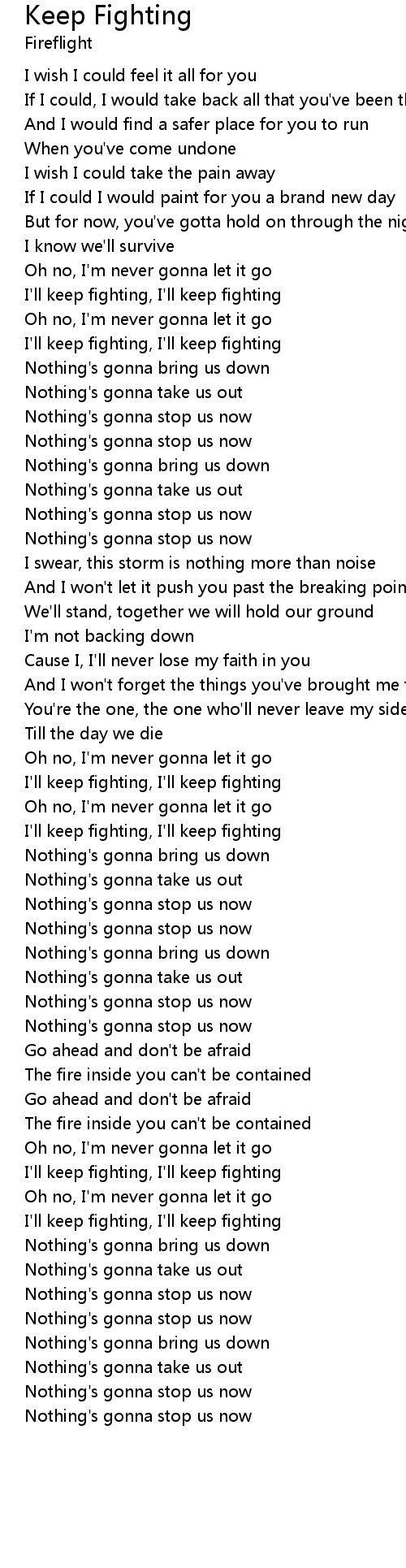 I'll keep fighting, I'll keep fighting |