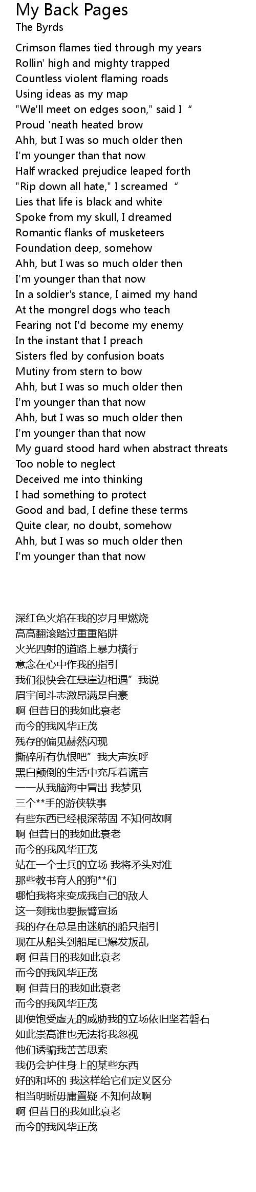 | [00:31.40] | Ahh, but I was so much older then |