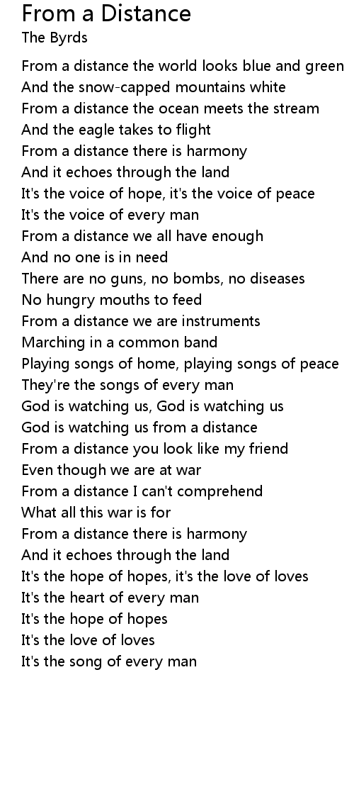 | From a distance you look like my friend | |