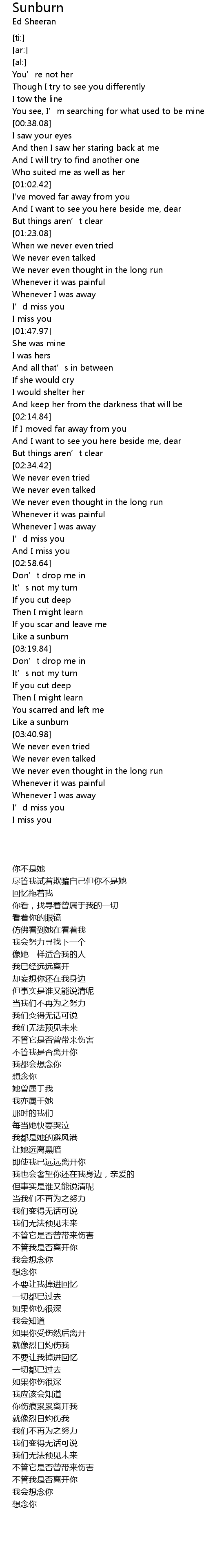 | [03:38.71] | Like a sunburn |