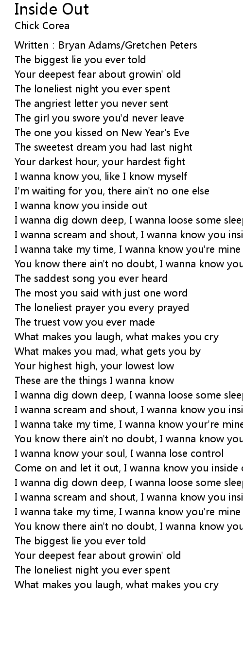 | You know there ain' t no doubt, I wanna know you inside out | |
