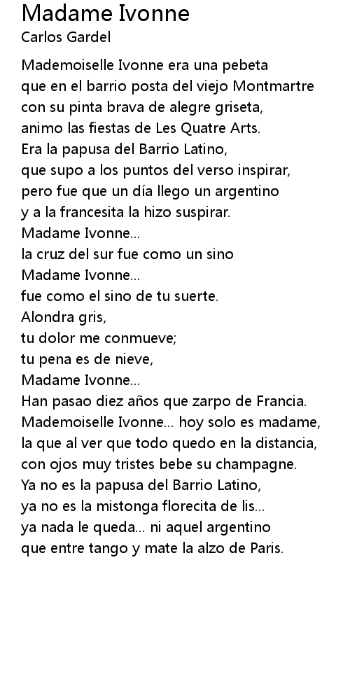| Mademoiselle Ivonne... hoy solo es madame, | |