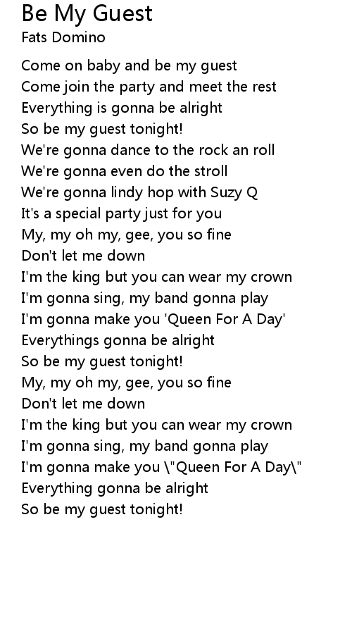 So be my guest tonight! |