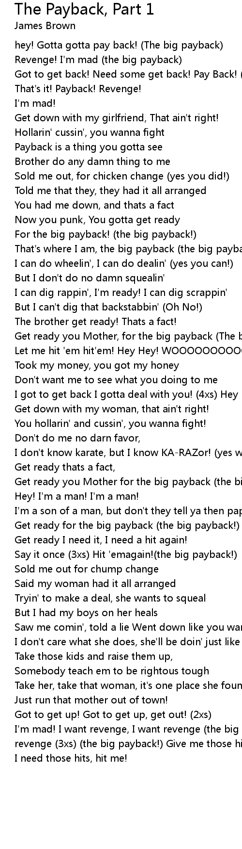 Got to get back! Need some get back! Pay Back! (the big payback) |