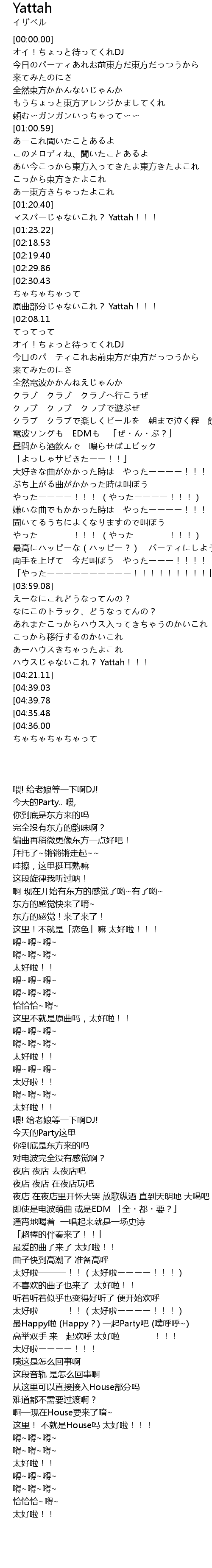 | [04:18.19] | ハウスじゃないこれ? Yattah!!! |