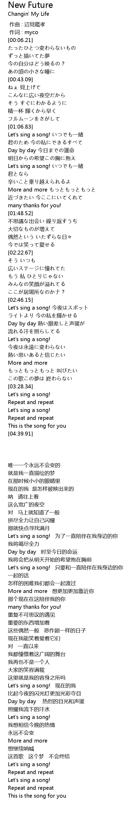 | [03:06.65] | Let's sing a song! |