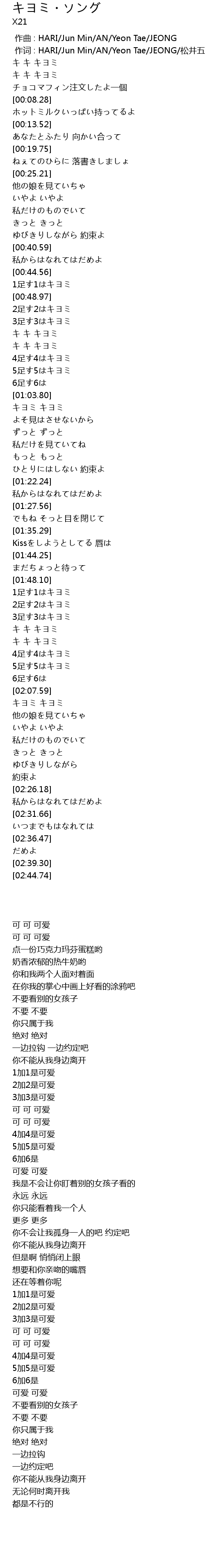 | [00:00.00] | zuò qǔ : HARI Jun Min AN Yeon Tae JEONG |