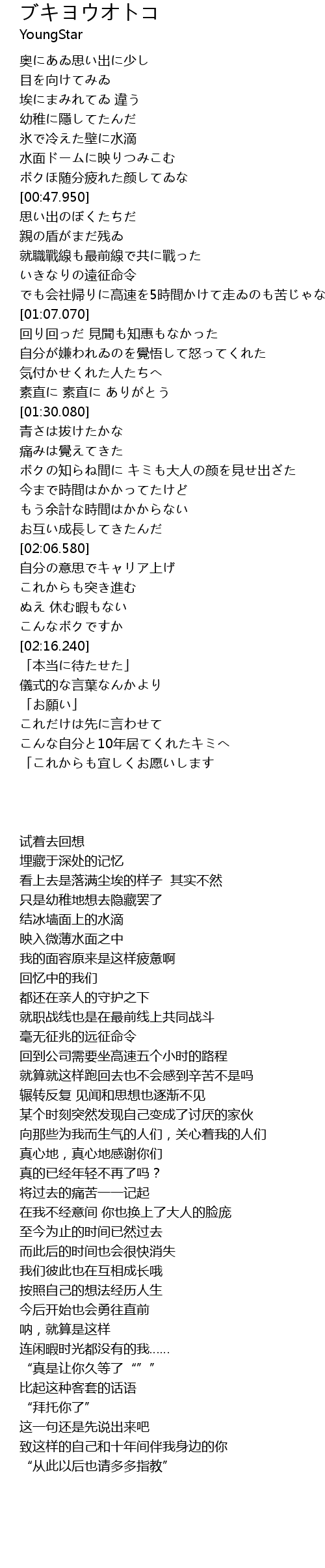 | [02:15.430] | こんなボクですか |