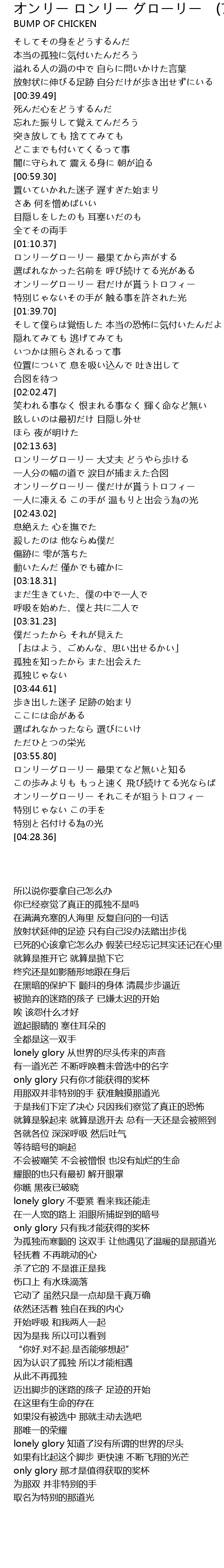 | [02:13.73] | ロンリーグローリー 大丈夫 どうやら歩ける |