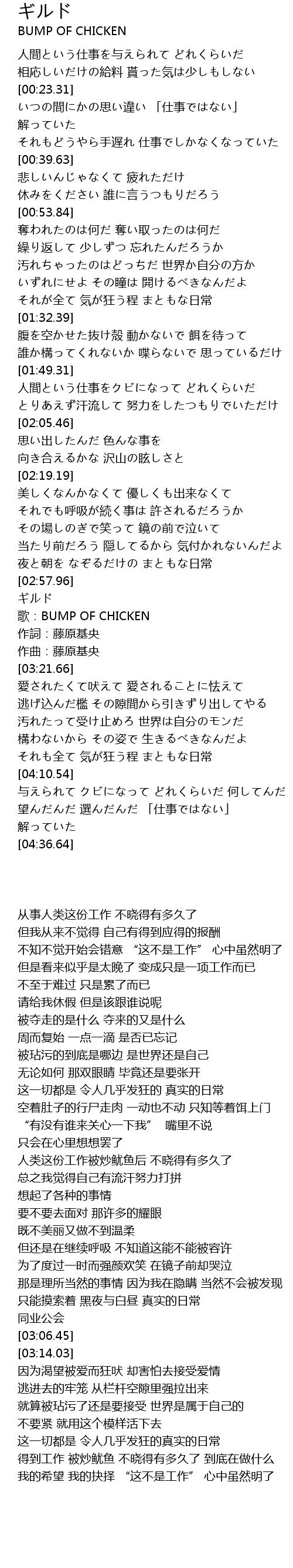 | [03:06.45] | gē: BUMP OF CHICKEN |