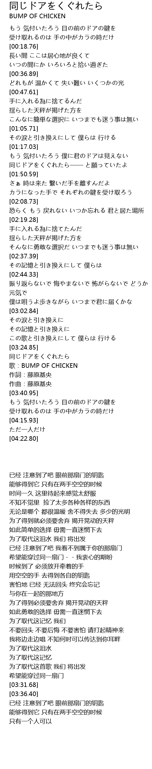 | [03:31.68] | 歌:BUMP OF CHICKEN |
