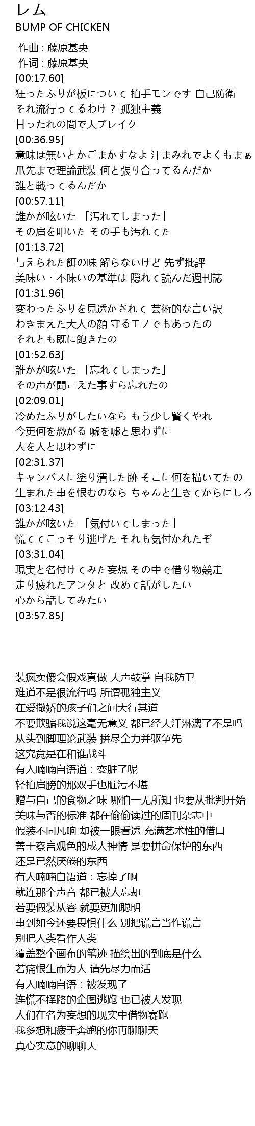 | [00:58.60] | 誰かが呟いた 「汚れてしまった」 |
