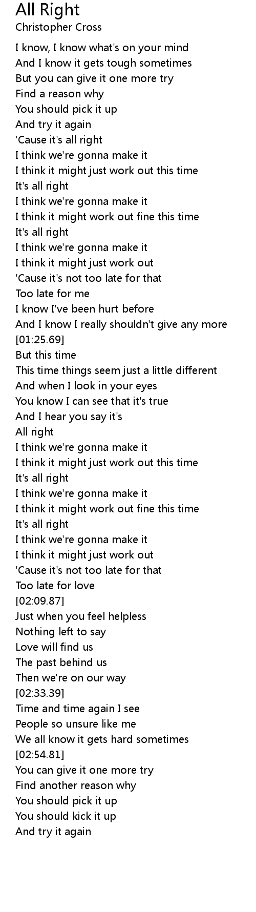 'Cause it's all right |