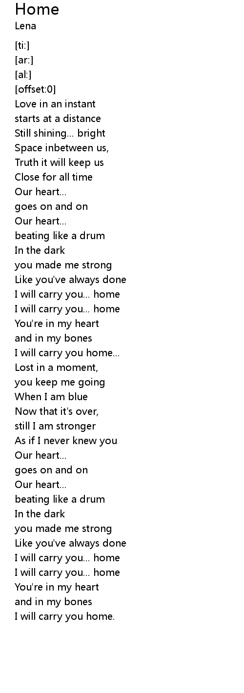 | [00:59.26] | I will carry you... home |