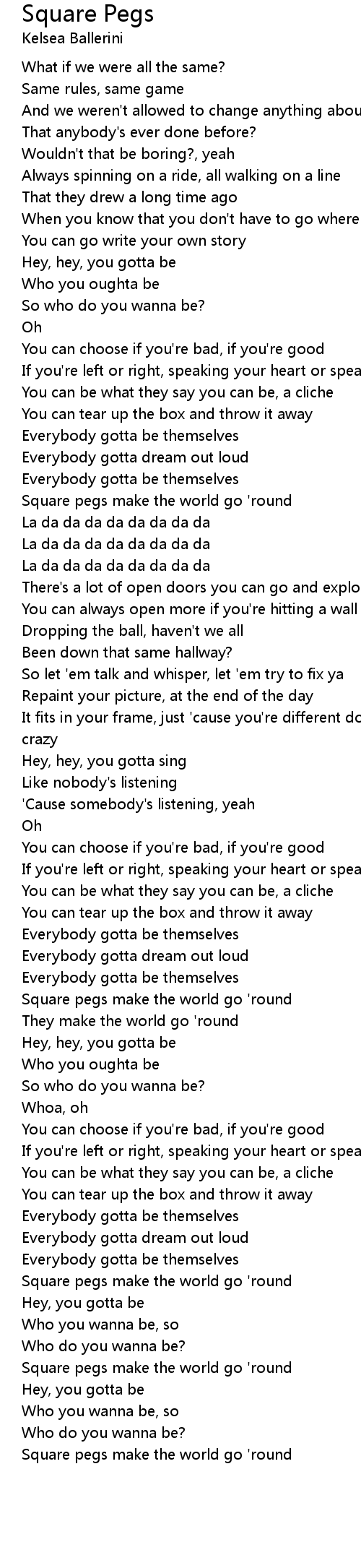 Song Square Pegs