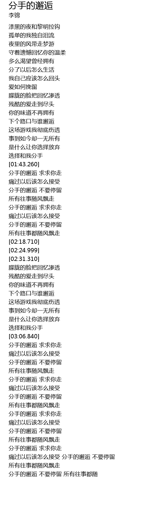 | [01:45.420] | 分手的邂逅 求求你走 |