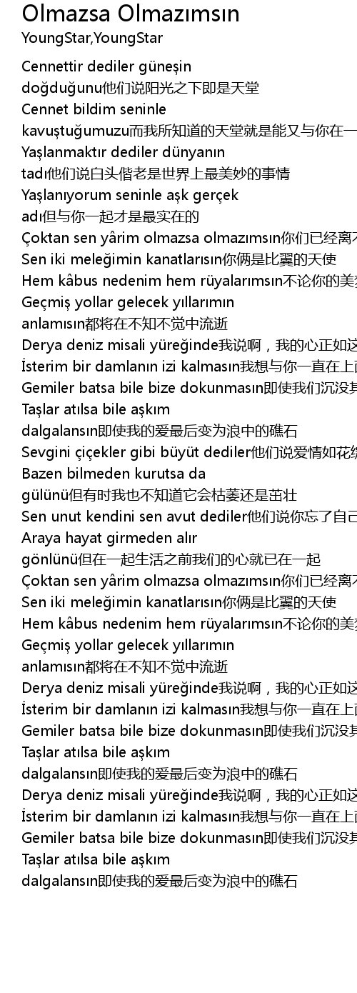 | [00:42.000] | Çoktan sen yârim olmazsa olmazımsın你们已经离不开彼此 |