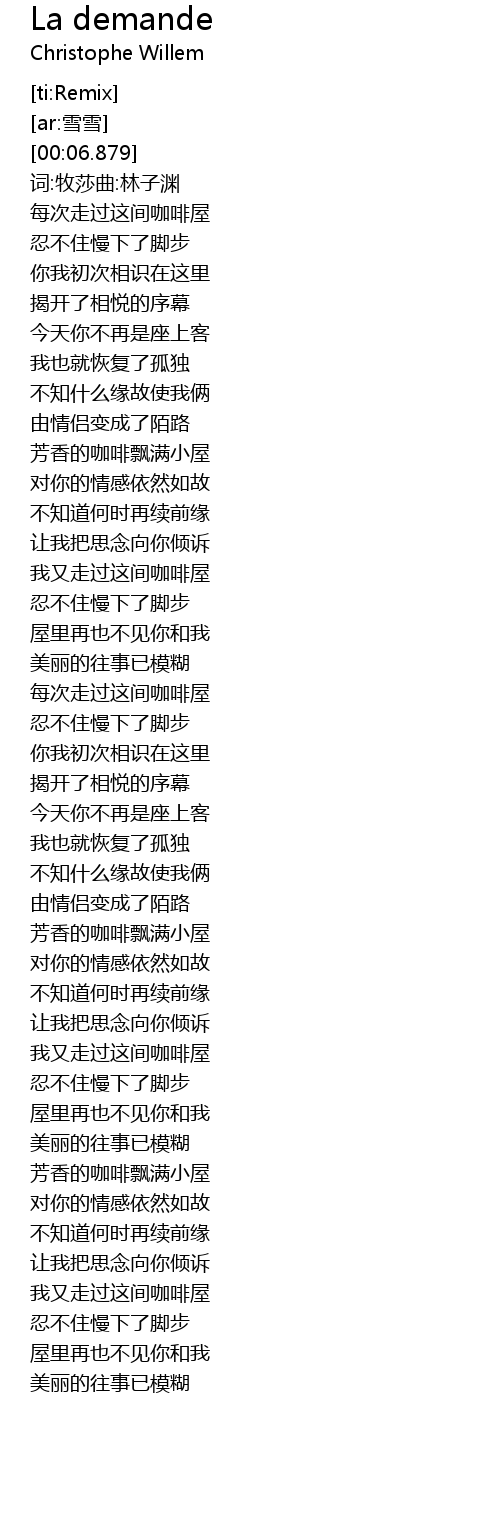 | [03:00.326] | 我又走过这间咖啡屋 |