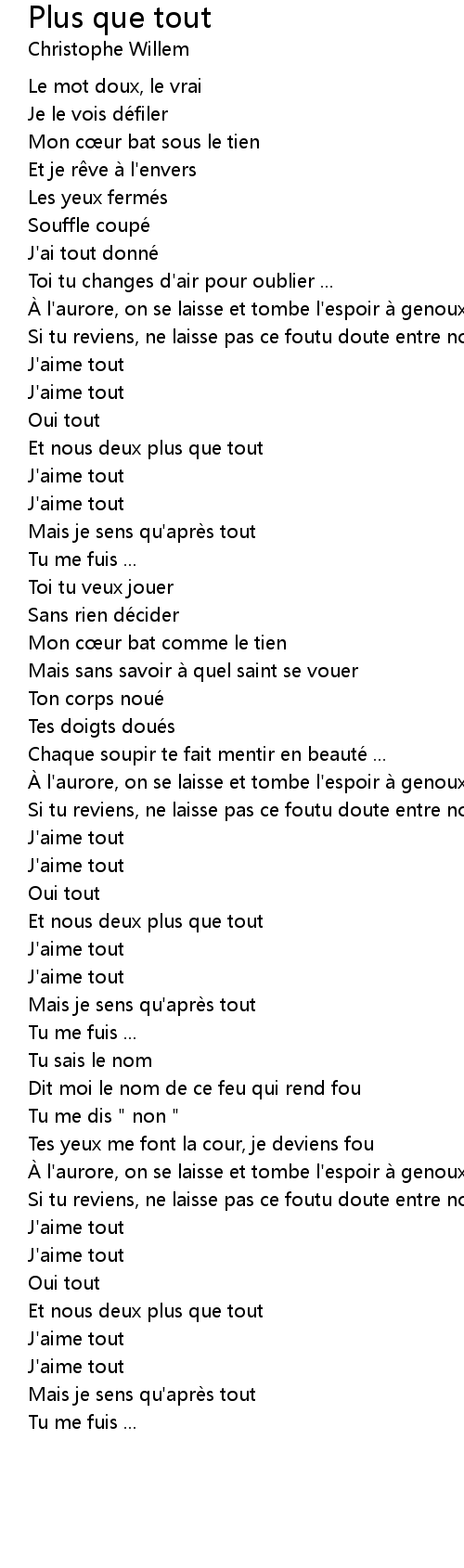 | Song | Plus que tout |
