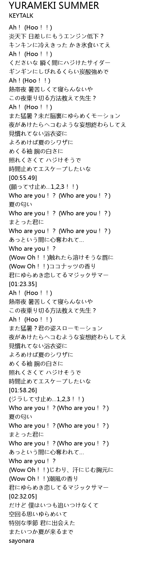 | [01:18.24] | 君にゆらめき恋してるマジックサマー |