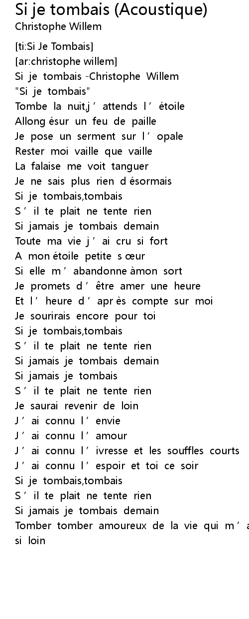 | [00:02.01] | Si je tombais -Christophe Willem |