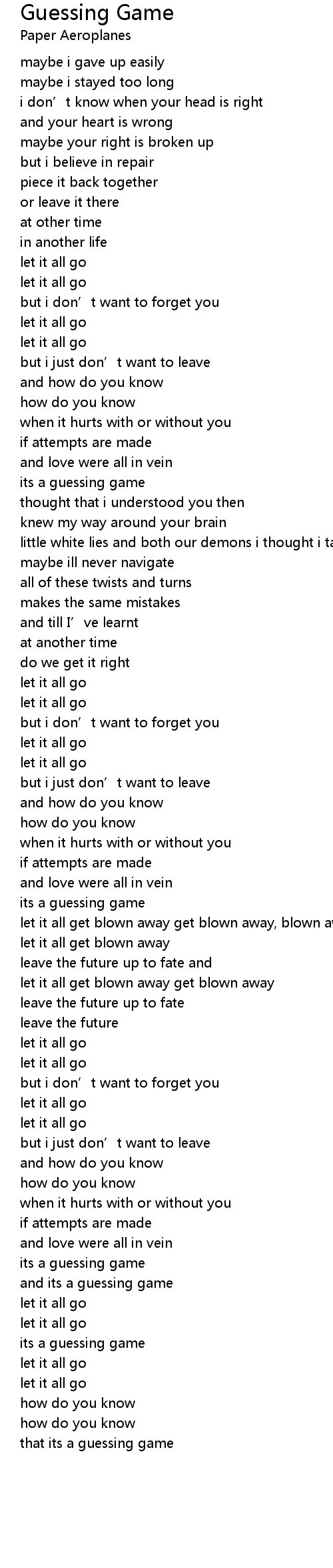 | Song | Guessing Game |