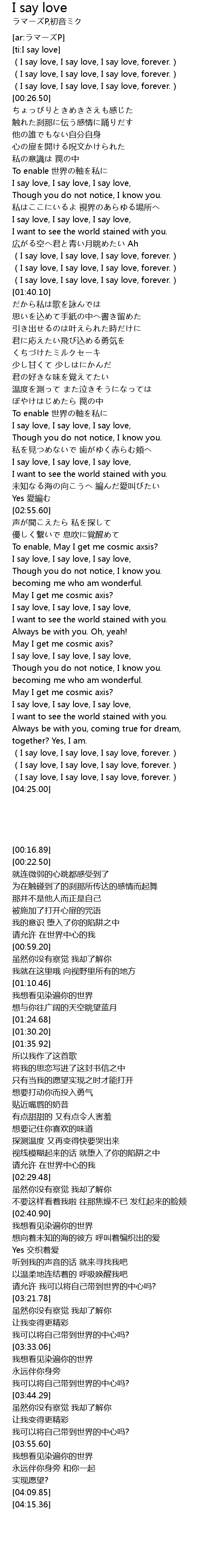 | [00:16.89] | (I say love, I say love, I say love, forever.) |