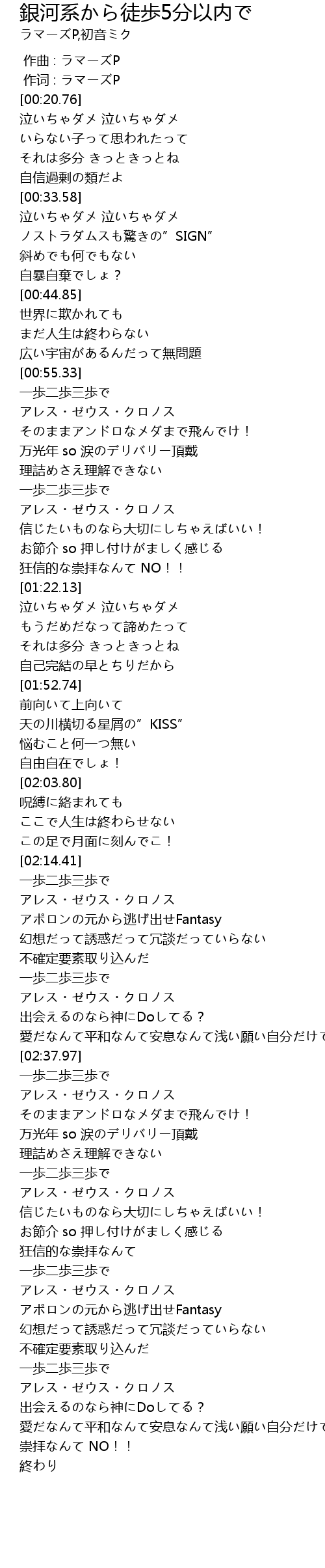 | [00:59.29] | そのままアンドロなメダまで飛んでけ! |