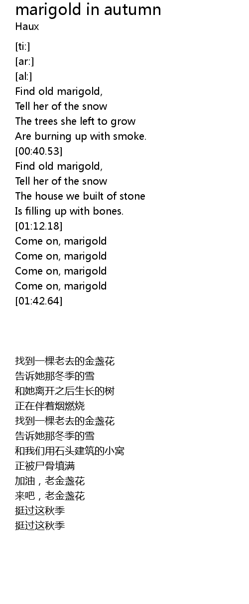 | [00:43.78] | Find old marigold, |
