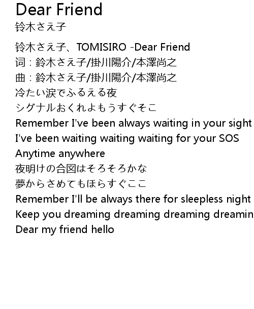 | [00:00.368] | ling mu zi TOMISIRO Dear Friend |