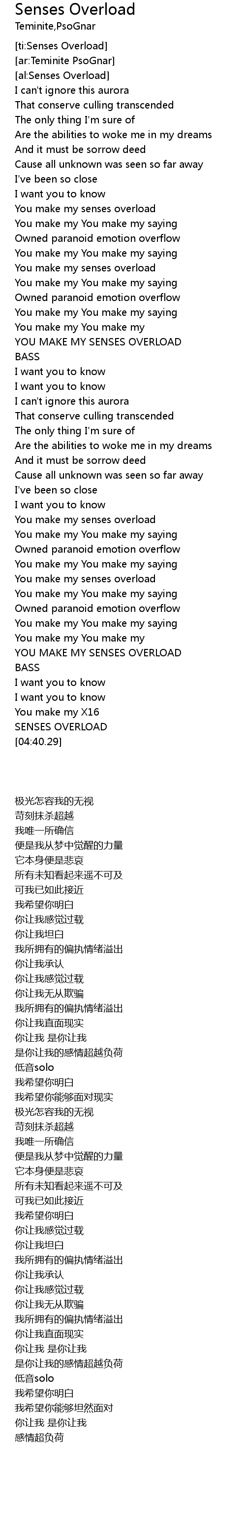 | [04:35.43] | SENSES OVERLOAD |
