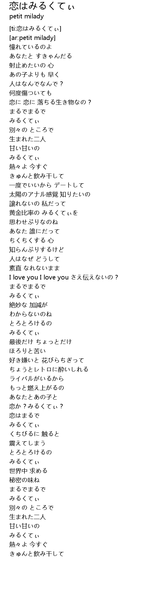 | [01:18.183] | 黄金比率の みるくてぃを |