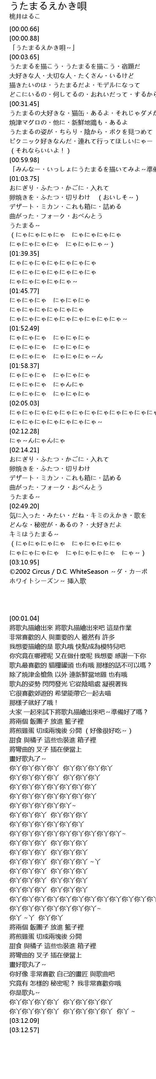 | [03:12.09] | ©2002 Circus / D.C. WhiteSeason ~ダ・カーポ |