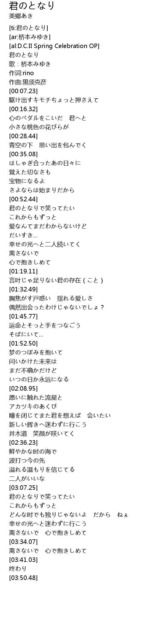 | [ti:君のとなり] | |