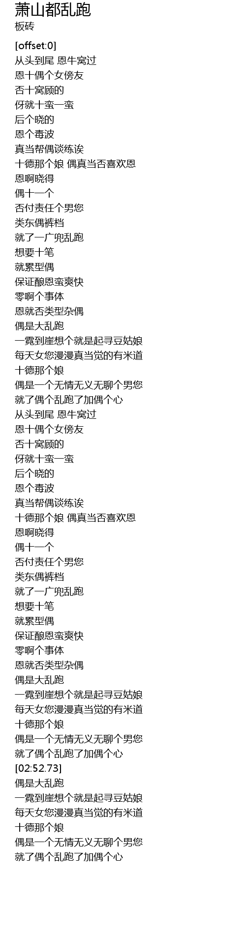 | [02:49.42] | 就了偶个乱跑了加偶个心 |