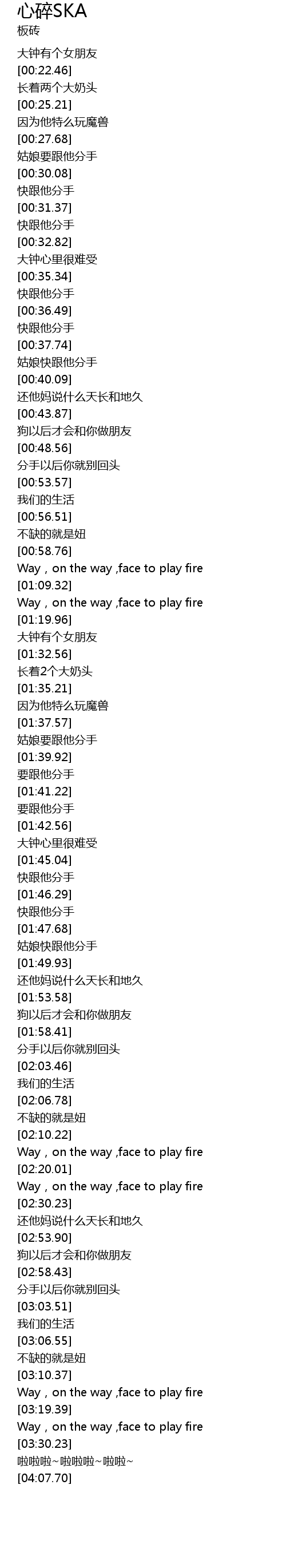 | [00:20.32] | dà zhōng yǒu gè nǚ péng yǒu |